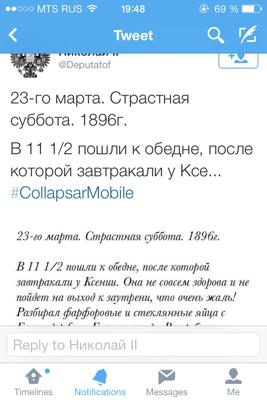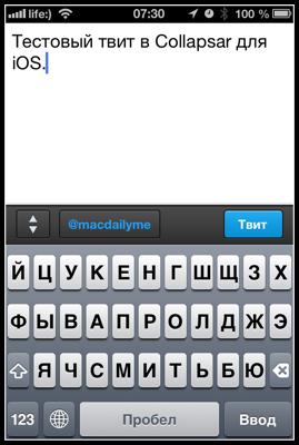 Collapsar аз худ як қисми оддии барномаеро мемонад, «фишка»-и он ин аст, ки имкони ирсоли твити зиёда аз 140 рамзаро дорад. Қаблан ин барнома танҳо барои iOS дастрас буда, рӯзҳои наздик ин барнома барои Mac OS низ дастрас шуд.
