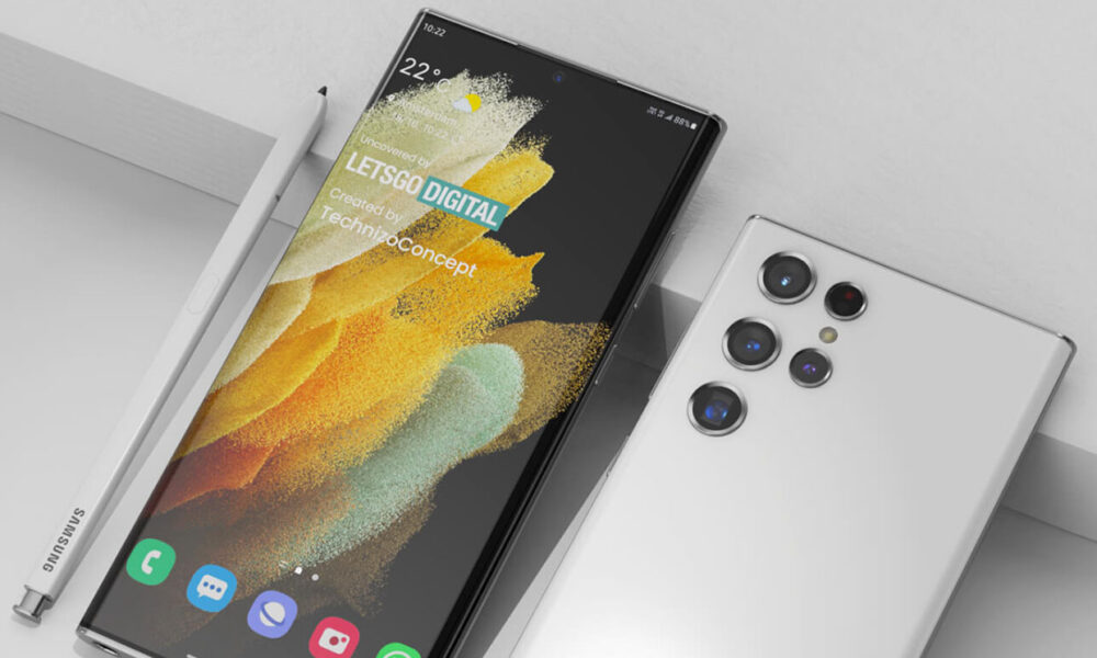 Қаблан хабар дода шуда буд, ки рендерҳои Samsung Galaxy S22 Ultra, ки аз ҷониби вебсайти LetsGoDigital дар якҷоягӣ бо агентии Technizo таҳия шудааст, ба шабака ворид шуданд. Консепсияи смартфон бо се ранг меояд: сиёҳ, сурх ва сафед.