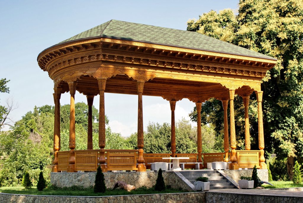 Дар майдони боғ дарахту гулбуттаҳои гуногун аз гӯшаву канори дунё, ки аксарияташон ба Китоби сурхи наботот сабт шудаанд, ҷамъ оварда шудаанд. Соли 2007 аз ҷониби шимолии гулхонаи (оранжереяи) шишагин осорхонаи кушодаи табиӣ, ки дар он намунаи хонаи истиқоматии маҳалҳои гуногуни Тоҷикистон ва инчунин аловхона, оташдон, танӯр, осиёбхона ва ғайра бунёд карда шуд.