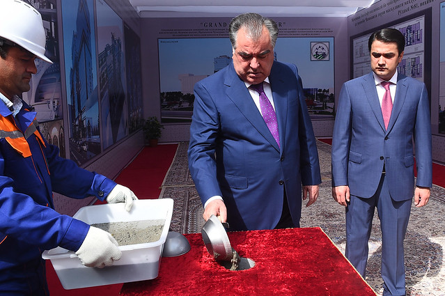 Рӯзи 4 сентябри соли равон  Асосгузори сулҳу ваҳдати миллӣ — Пешвои миллат, Президенти Ҷумҳурии Тоҷикистон муҳтарам Эмомалӣ Раҳмон бо Раиси шаҳри Душанбе муҳтарам Рустами Эмомалӣ дар хиёбони Рӯдакии пойтахт барои сохтмони Маҷмааи баландошёнаи бисёрфунксионалӣ, бо ҷойгиркунии меҳмонхонаи замонавии панҷситорадори 24 ошёна ва ду адад апартаментҳои резиденсии (қароргоҳӣ) 18-ошёнаи «GRAND RUDAKI TOWER» санги асос гузоштанд.