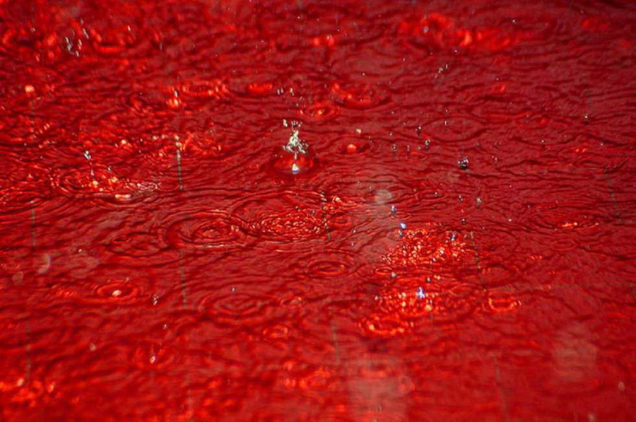 Тамоми боғу гулгаштҳо ранги сурхро гирифт ва одамон ба таҳлука афтоданд. Шоҳидони воқеа, ки намунаи ин боронро ҷамъ оварда буданд, мегўянд, ки он ранги сиёҳи қаҳвамонанд дошту бўяш ба лаблабу монанд буд.