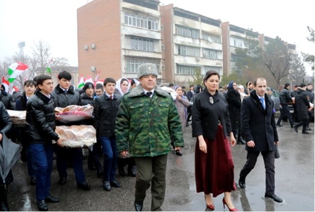 Роҳбарияти шаҳр ва модарони таҷрибадор ҳамчун рамзи таҷлил аз 30-солагии Қувваҳои Мусаллаҳи Ҷумҳурии Тоҷикистон бо 30 адад сабадҳои маҳсулоти нониву қаннодӣ, шириниву меваҳо, ҷавонони шаҳр бо 30 адад китобҳои тазанашр, варзишгарон бо 30 адад лавозимоти варзишӣ, корвони ҷавонон бо 30 адад Парчами давлатии Ҷумҳурии Тоҷикистон ва корвони 100-нафараи ҷавонони синни даъватӣ аз назди маҷмааи варзишии шаҳр то қисмҳои низомӣ роҳпаймоӣ намуданд.