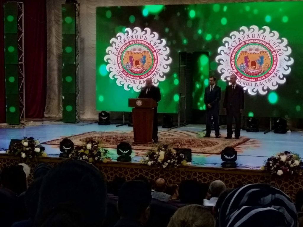 Баъд аз суханронии муовини раиси вилояти Суғд Баҳоваддин Баҳодурзода, консерти идона таҳти унвони таронаҳои дӯстӣ — «Дастархони Суғдӣ» Карнайбазм бо иштироки хонандагони мактаби санъати бачагонаи №3-и ба номи Н.Каримов ва гуруҳи рақсии «Гулноз» оғоз шуд.