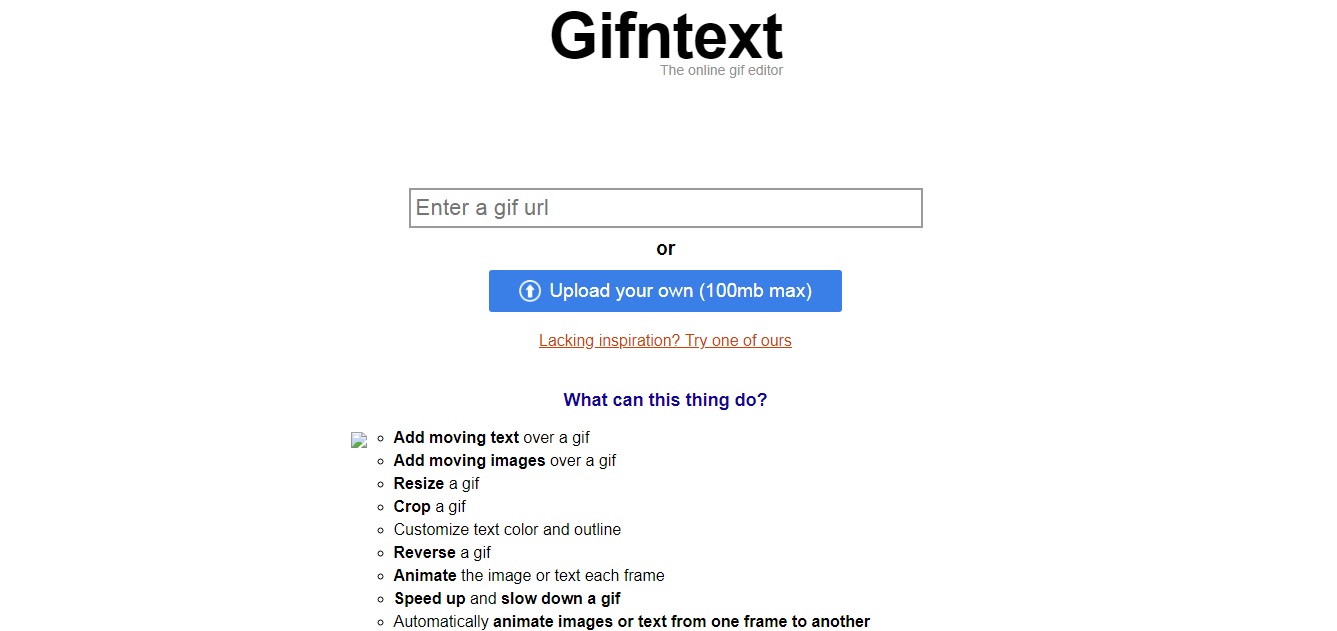 Веб-редактор Gifntext тоже предназначен для создания гифок, но предлагает ещё больше настроек анимации. Например, вы можете выбирать положение прикреплённого текста и прочие параметры для каждого отдельного кадра. В качестве исходников нужно загружать GIF-файлы.