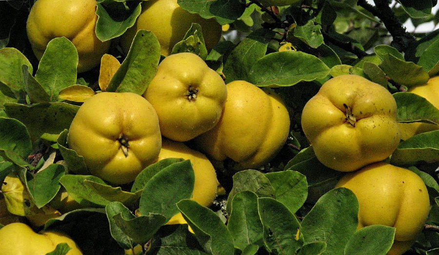 Мевааш лӯнда ё нокмонанд, зард (вазнаш 228–250 г; баъзан то 1200 г), моҳҳои сентябр – ноябр мепазад, гӯшташ зарди камоб, тухмаш ҷигарии сурхча, вазни 1000 донааш 24–44 грамм мебошад.