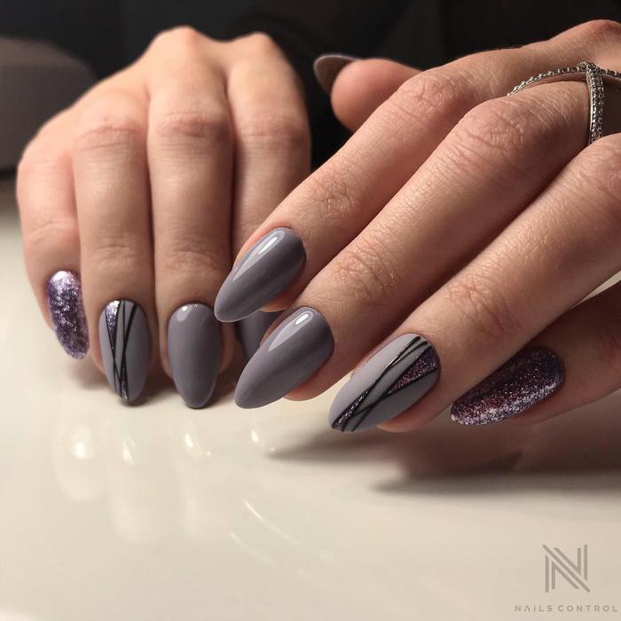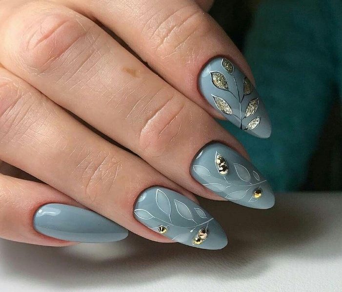 Модная тенденция осени № 7 — Сине-серая цветовая гамма Для осеннего маникюра характерны не только рыжие и красные оттенки, но и серо-синяя цветовая гамма, ведь цвета нашего гардероба меняются на более темные, а вместе с ними и дизайн ногтей.