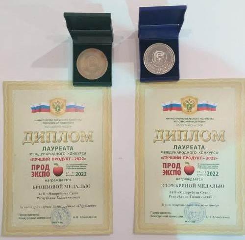 Маҳсулоти ватании Ҷамъияти саҳомии пӯшидаи «Машруботи Суғд» дар озмуни «Маҳсулоти беҳтарин», ки дар доираи намоишгоҳи «ProdExpo-2022» дар шаҳри Москва доир шуд, соҳиби 2 медал гардид. Дар ин бора ба АМИТ «Ховар» дар Палатаи савдо ва саноати Ҷумҳурии Тоҷикистон хабар доданд.