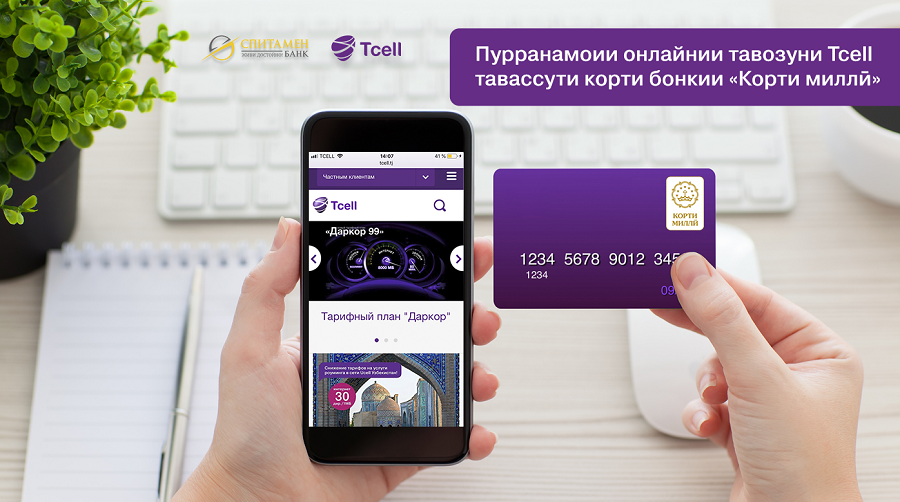 Ширкати Tcell ва Спитамен Бонк дар мавриди хизматрасонии ҷадид, ки тавассути он имкони пурра кардани ҳисоби телефонҳои мобилӣ аз тариқи кортҳои бонкии “Корти миллӣ” имконпазир мешавад, эълон намуданд! Ин кортҳо дар ҳама бонкҳои кишвар дастрас мебошанд.