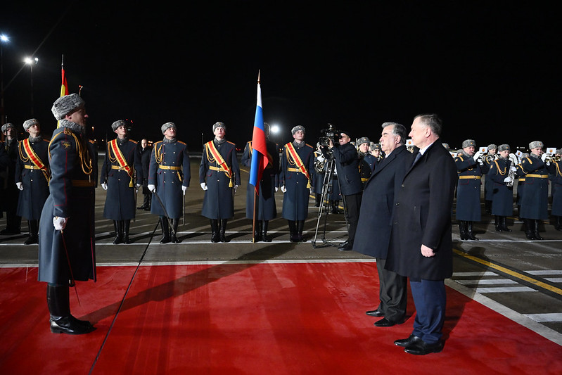 Маросими истиқболи расмӣ бо гузаштани Президенти Ҷумҳурии Тоҷикистон муҳтарам Эмомалӣ Раҳмон аз назди ротаи фахрӣ, арзи эҳтиром ба Парчами давлатии Федератсияи Русия ва гузашти тантанавии қаровули фахрӣ аз назди меҳмони олимақом ба поён расид.