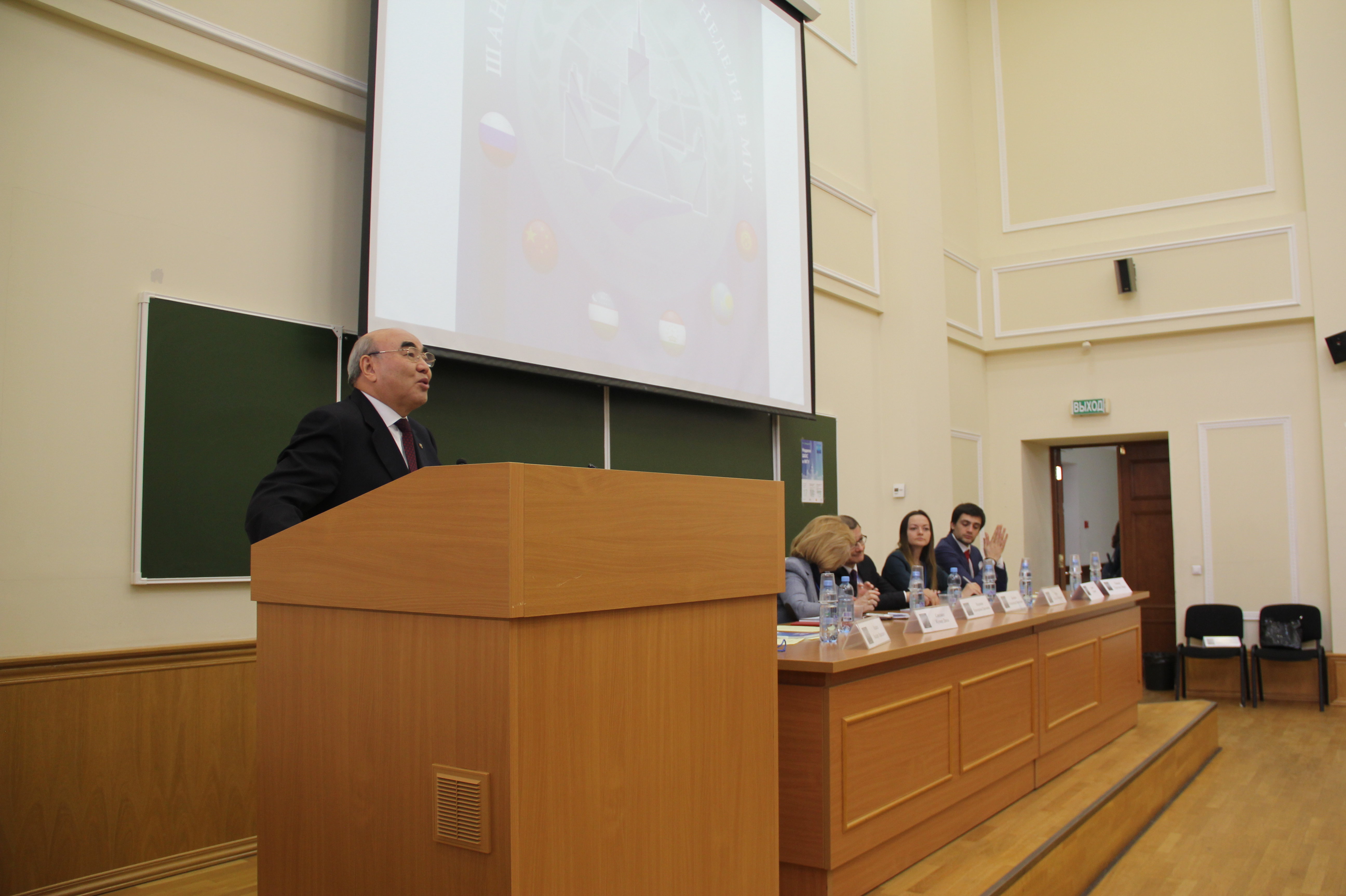 Дар фарҳангсарои Донишгоҳи давлатии Ломоносови Маскав (МГУ) ҳамоиши «Ҳафтаи Созмони ҳамкориҳои Шанхай дар МГУ» ба кори худ оғоз кард. Дар маросими ифтитоҳи ҳамоиши устодони донишгоҳ ва дигар намояндагони баландпоя аз ҷумла, нахустин раисҷумҳури Қирғизистон Аскар Оқоев ширкат ва суханронӣ карданд. Аксар Оқоев Созмони ҳамкориҳои Шанхайро яке аз муҳимтарин созмонҳо дар ҷаҳон номиду аз торихи он ёдовар шуд ва гуфт, ки танҳо ин созмон қодир аст дар саросари ҷаҳон сулҳу оромиро бар по дорад ва ҳатто вазъи Афғонистонро беҳбуд кунад.
