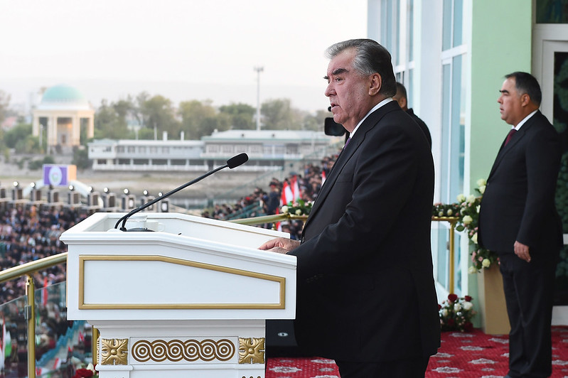 Суханронии Пешвои миллат Эмомалӣ Раҳмон дар варзишгоҳи марказии шаҳри Хуҷанд