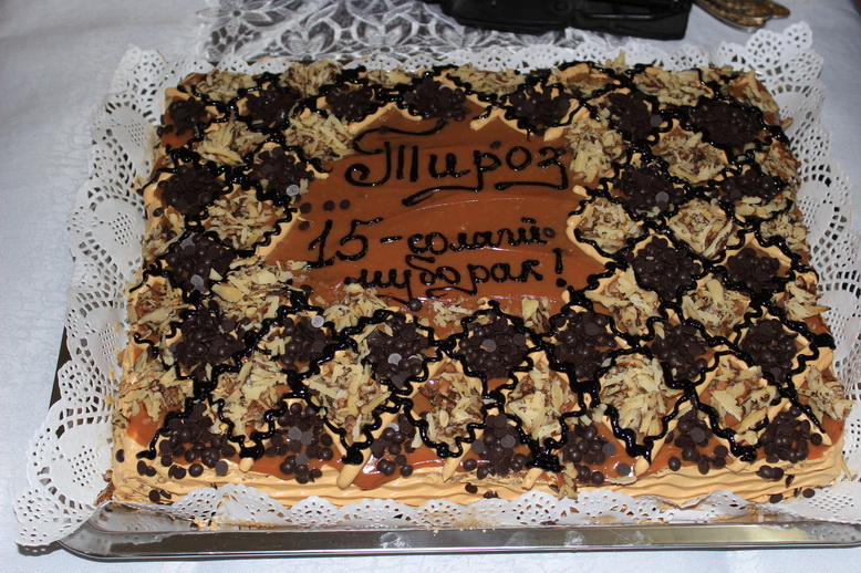 Тӯҳфаи хеле зебо ва беназир дар ин рӯз барои роҳбарият ва кулли кормандони “Тироз” — ин ҳадяи шогирд ва танзимгари радио — Хусравҷон буд, ки ба шакли дарахти мевадиҳанда бо меваҳои шаҳду шакаринаш, яъне бо акси Сарвари кулли ШТРР “Тироз” Хуршед Азимҷонович Ӯлмасов ва фаъолону пешсафони ин даргоҳ омода шудааст.