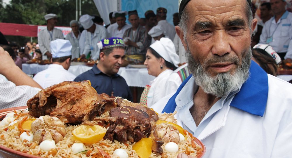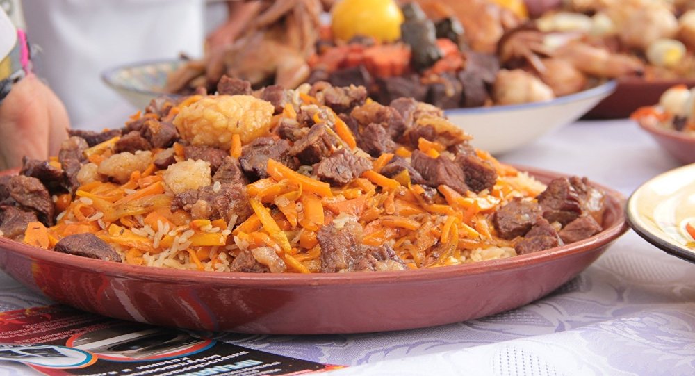 Палавро дар табақи гирди калон мебардорем ва болояшро бо гўшт, қаламфур ва сирпиёз оро медиҳему рўи миз мегузорем. Иштиҳои том!