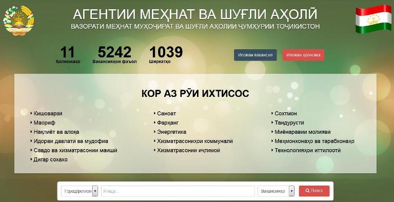 Вазорати меҳнат, муҳоҷират ва шуғли аҳолии Ҷумҳурии Тоҷикистон ба иттилои шаҳрвандон ва корфармоёни мамлакат мерасонад, ки онҳо низ метавонанд тавассути сомонаи мазкур беҳтарин мутахассисони соҳаҳои гуногунро пайдо намуда, бо онҳо шартномаи меҳнатӣ ба имзо расонанд.