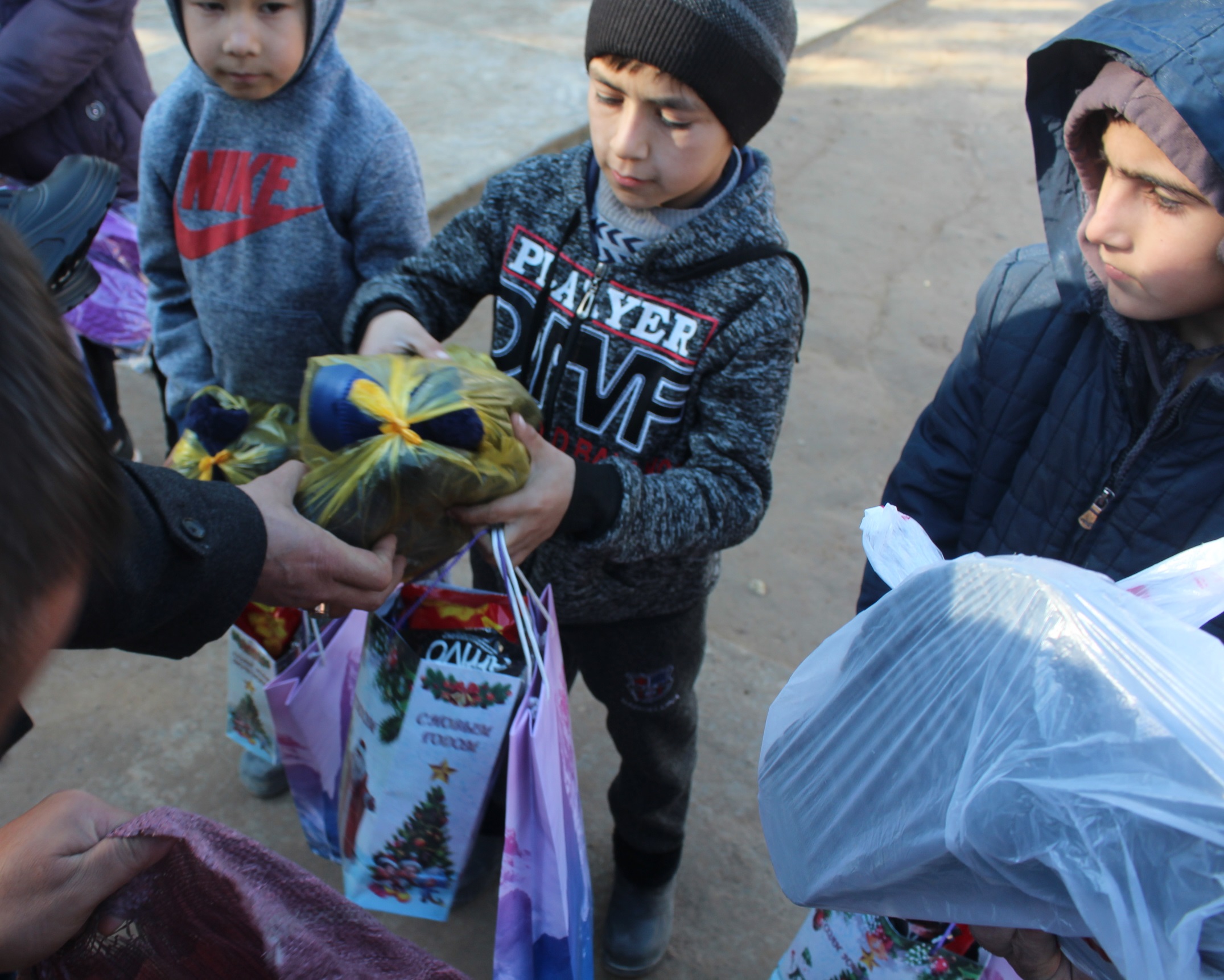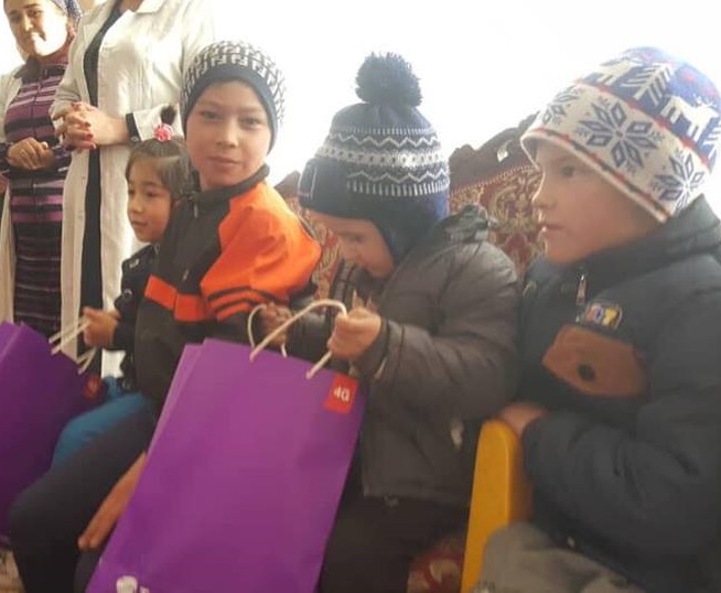 Парваришгоҳи №1 дар маҳаллаи Чорбоғ ҳамчун ҳадя маҳсулоти беҳдоштӣ (гигиенӣ) гирифт, зеро дар ин ҷо кӯдакони имконияти ҷисмониашон маҳдуд таҳсил ва зиндагӣ менамоянд. Бобои барфии бунафшранг ҳамчунин меҳмони марказҳои тарбияи атфол дар Файзобод ва Шаҳринав гардида, барои онҳо тӯҳфаҳои хоса: бозичаҳо, таҷҳизоти гармидиҳӣ ва либосу пойафзол тақдим сохт.