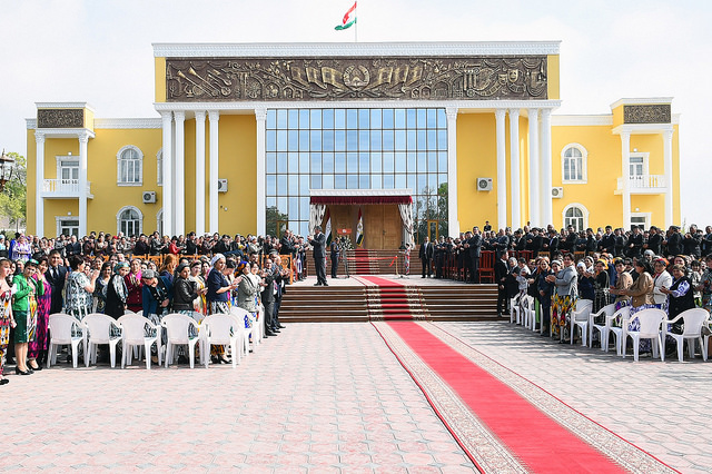 Дар саҳни ҳавлии Театри мусиқӣ-драмавӣ Президенти мамлакат Эмомалӣ Раҳмон бо аҳли фарҳанг ва дигар сокинони ноҳия, ки барои истиқболи Пешвои миллат ва сӯҳбат бо Сарвари хеш ҷамъ омада буданд, мулоқоти самимӣ орост.