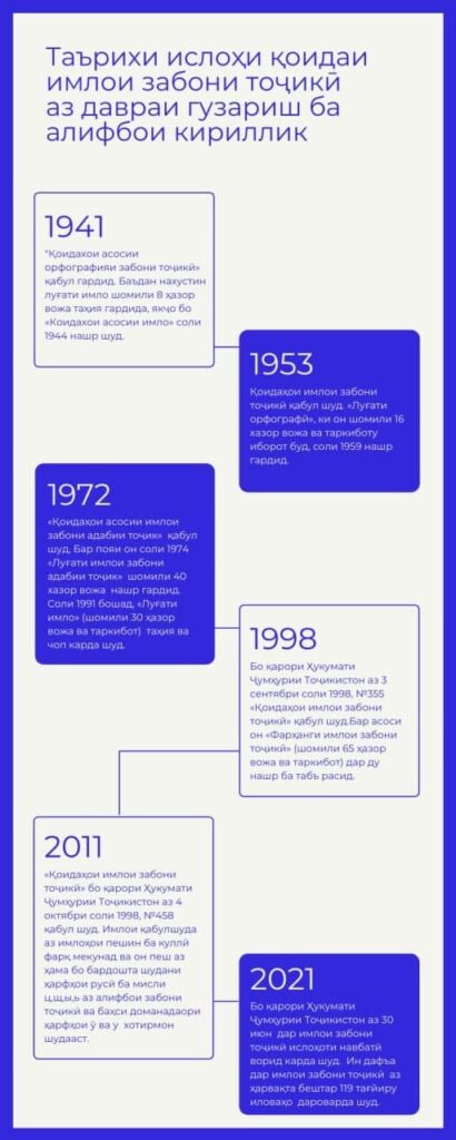 Ҳукумати Тоҷикистон Қоидаҳои нави имло ва аломатҳои китобати забони тоҷикиро қабул кард. Ба қоидаҳои имлои забон ба сурати умум 119 тағйиру иловаҳо дароварда шуд.